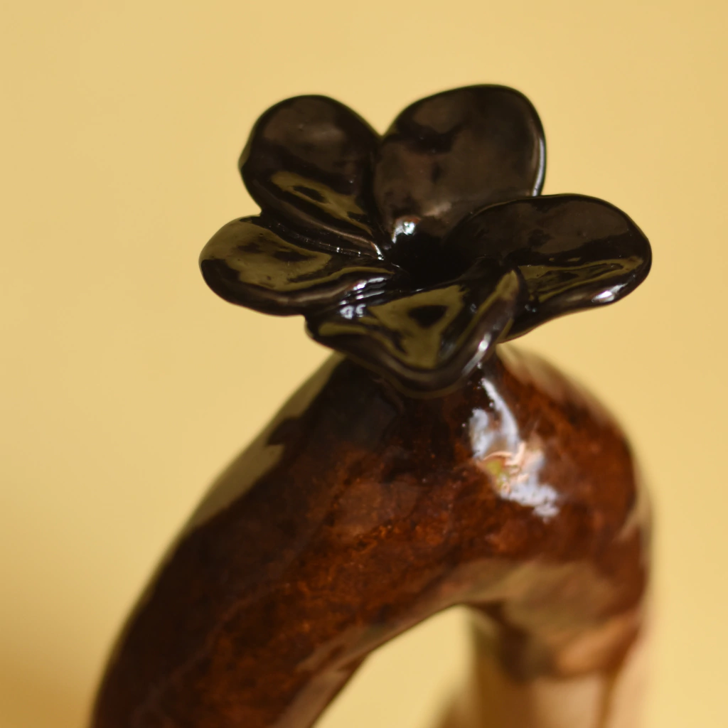 Vaso ornamental de cerâmica de alta temperatura. Mescla de dois tipos de argila: tabaco e preta vesúvio.